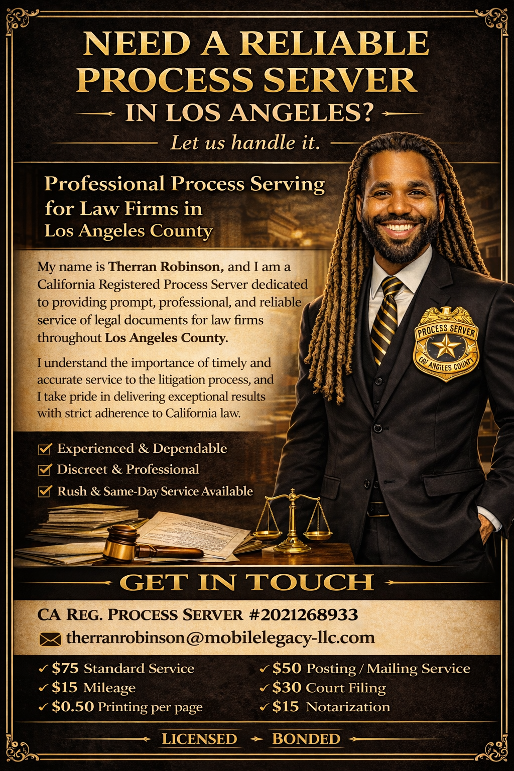 | AmStar Express | (888) 778-2711 | Our very competitive 'Local' process serving fees start at $49.00 to Ventura &; Los Angeles Counties. Our local service areas include but are not limited to the following cities and entities: